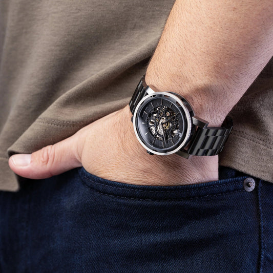 Mens Black Automatic Watch - Black Stainless Steel Strap l PUNCH