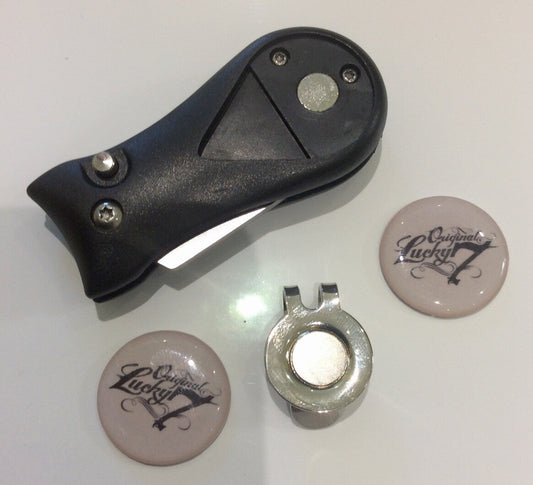 Golf Pitchfork Magnetic Hat Clip With 2 Lucky 7 Markers