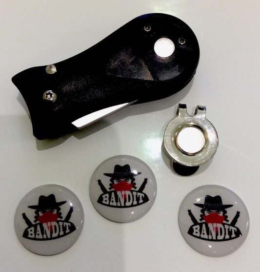 Golf Pitchfork Magnetic Hat Clip With 3 Red Scarf Bandit Markers