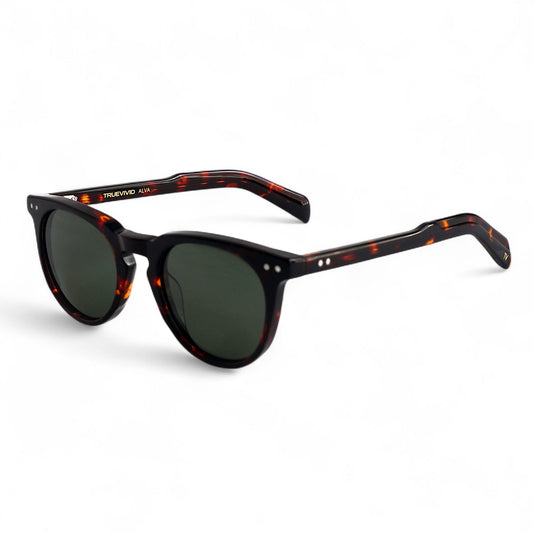 ALVA Tortoise Round Retro Polarised Sunglasses, Green Lens by TrueVivid