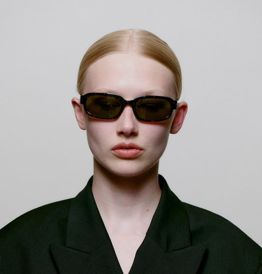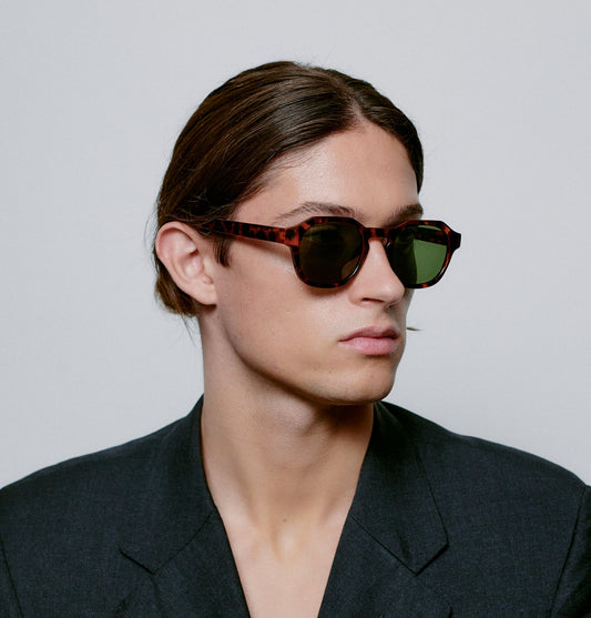 A.KJÆRBEDE (AKJAERBEDE) Zan Sunglasses | Havana Tortoise Frame, Green Lens