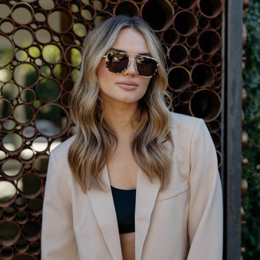 Lunettes de soleil aviateur carrées surdimensionnées GIA pour femme, couleur écaille beige, par WMP Eyewear