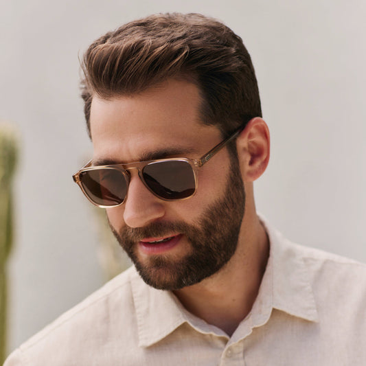 Lunettes de soleil aviateur carrées unisexes EMERSON en marron cristal par WMP Eyewear