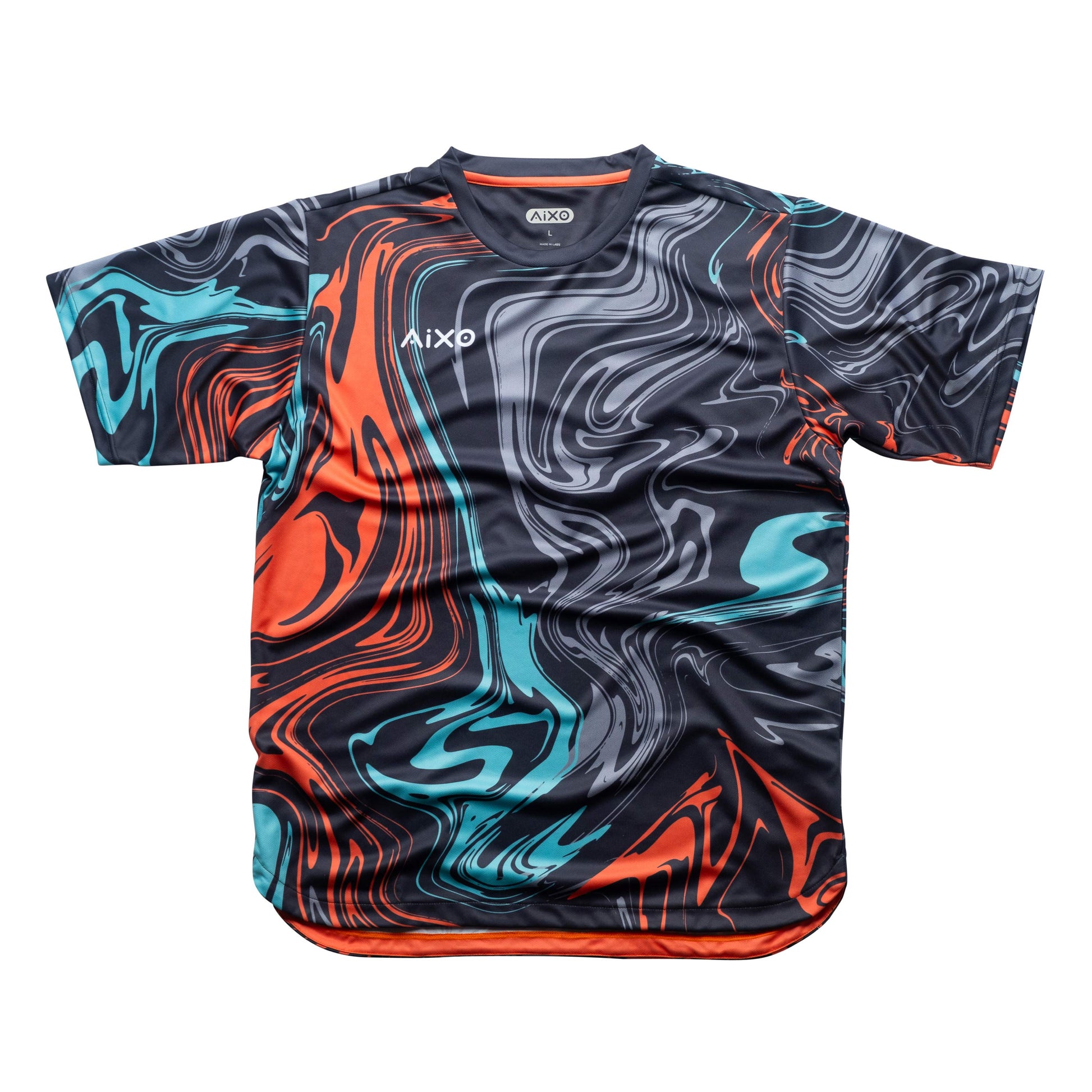 Introducing a lava-like masterpiece in mesmerizing color-melting hues. Pair its fluid design with your dynamic on-court movements for the ultimate racket-based combination. Beyond its captivating aesthetics, this top offers advanced technology with lightweight, moisture-wicking, and breathable fabric, ensuring top-notch performance. Engineered to withstand the challenges of any racket sport, whether it's tennis, badminton, padel, pickleball, or squash, this AIXO shirt has you covered.