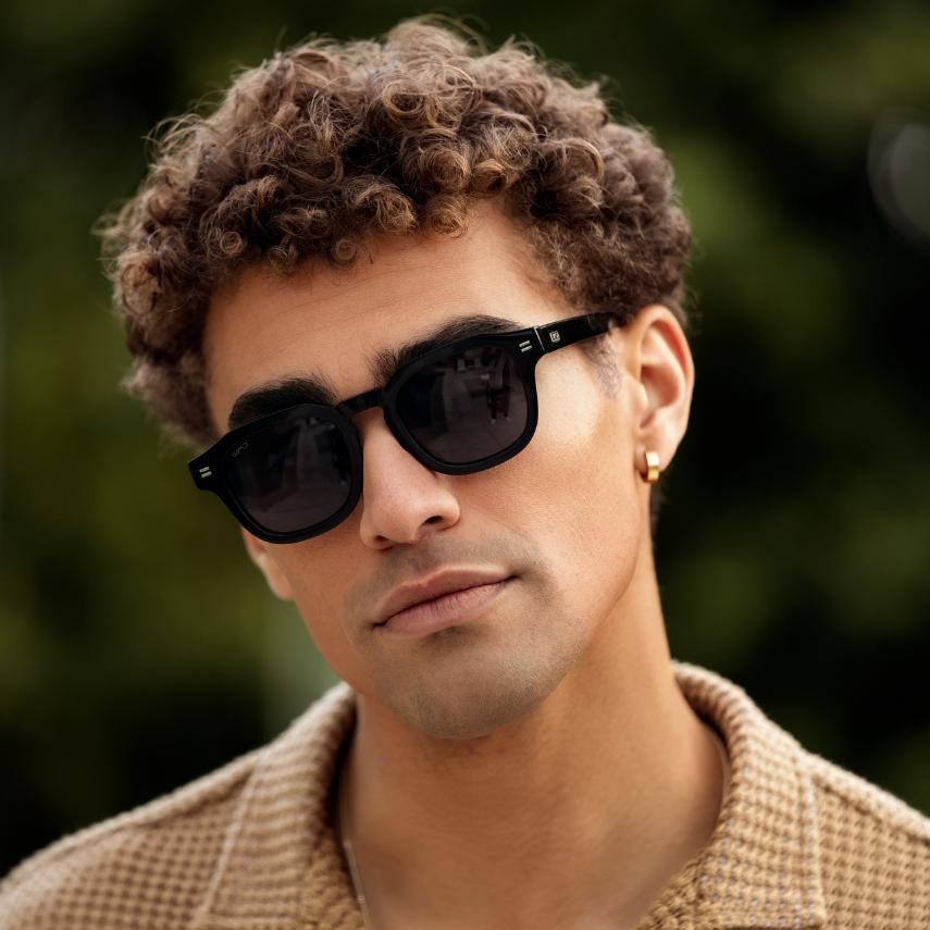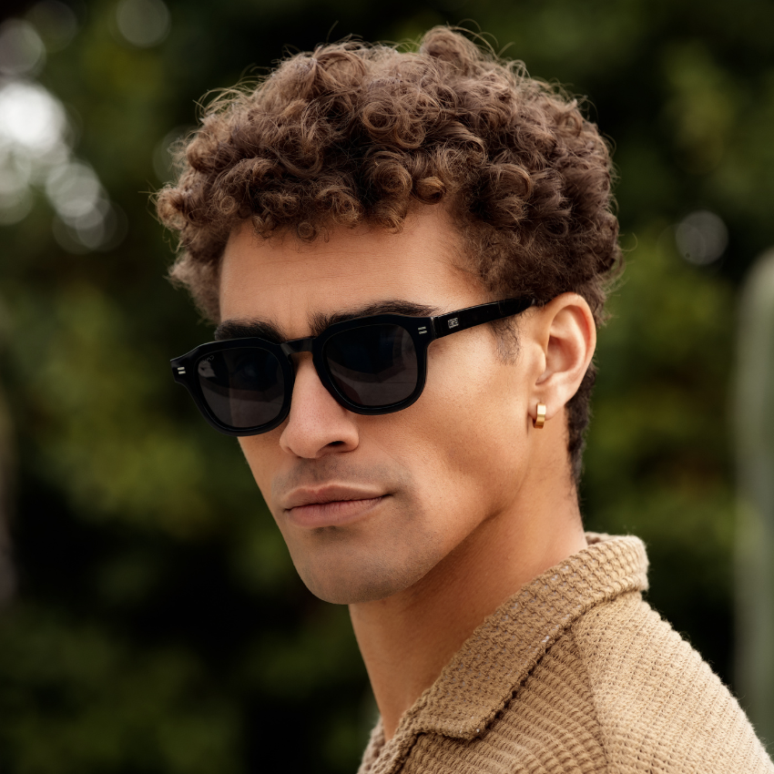 Les lunettes de soleil Nelson, triplement noires, incarnent le style rétro des années 60 avec leurs lignes géométriques nettes et leur silhouette carrée imposante. Dotées d'une monture épaisse, d'une ligne de front marquée et d'un pont en trou de serrure, ces lunettes de soleil affichent un style intemporel avec une touche de modernité.