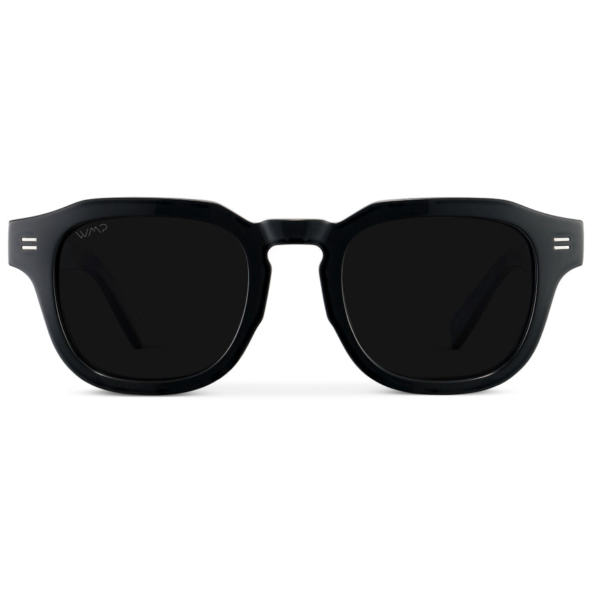 Lunettes de soleil rétro polarisées à monture épaisse NELSON pour homme, triple noir, par WMP Eyewear UK