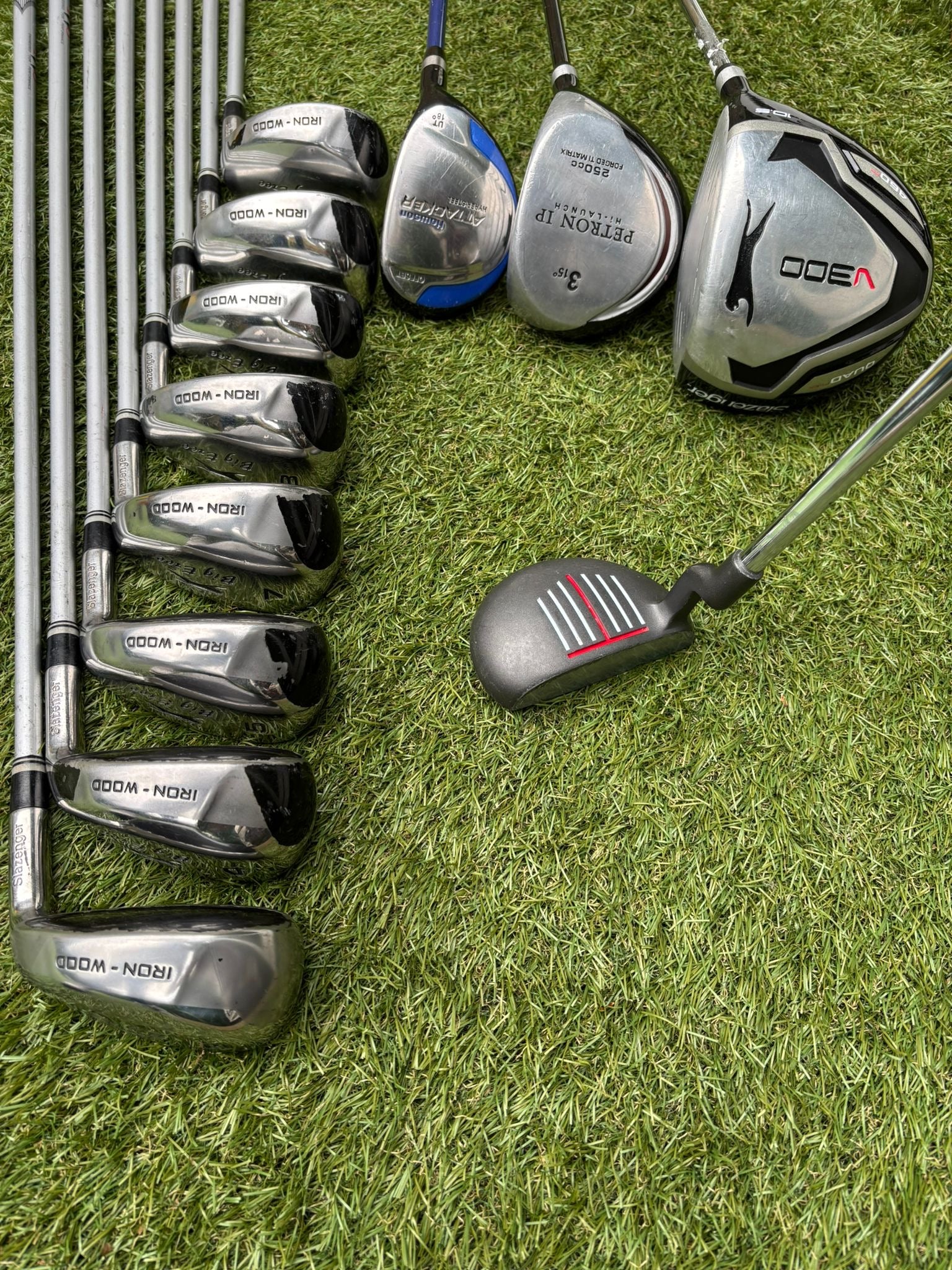 A complete beginner-friendly golf set built around the forgiving Slazenger Big Ezee iron-wood irons. Designed to make ball striking easier, this setup offers distance from the tee, reliable approach play and a lightweight stand bag to carry everything comfortably around the course.