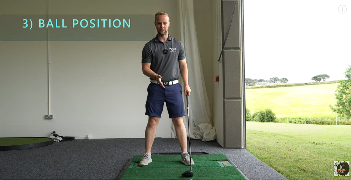 Proper ball position is essential. Position the ball forward in your stance, just inside your left foot (for right-handed golfers).