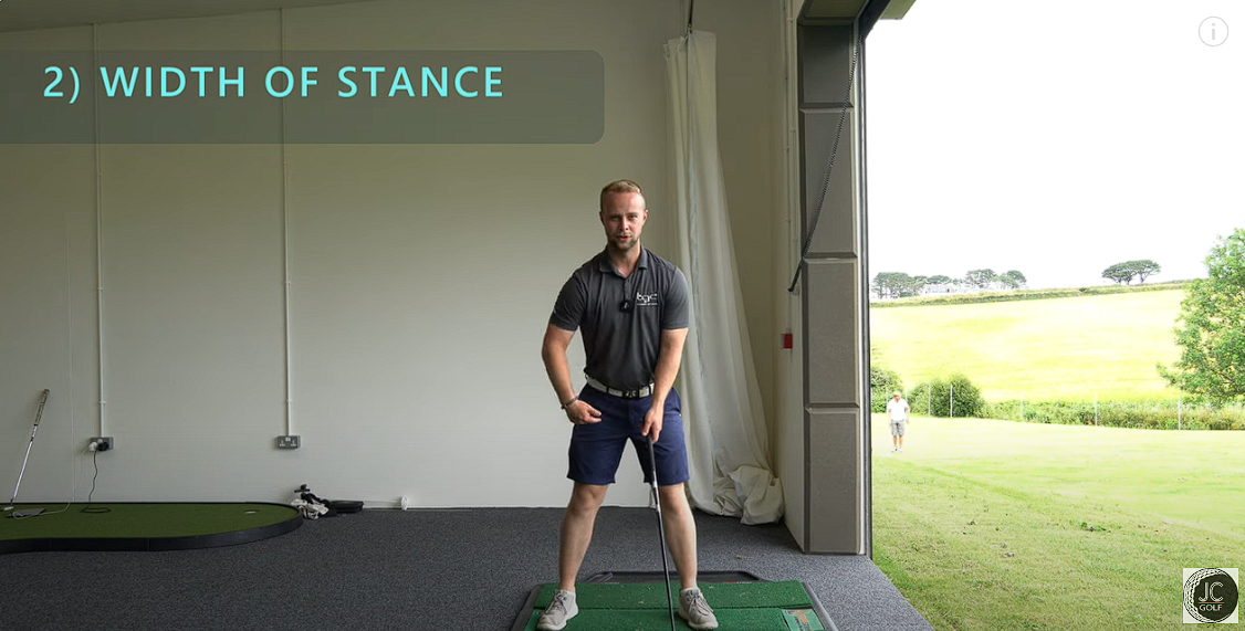 A good routine: start with your feet together and the ball centered, then step your left foot two inches out and your right foot outside shoulder width.
