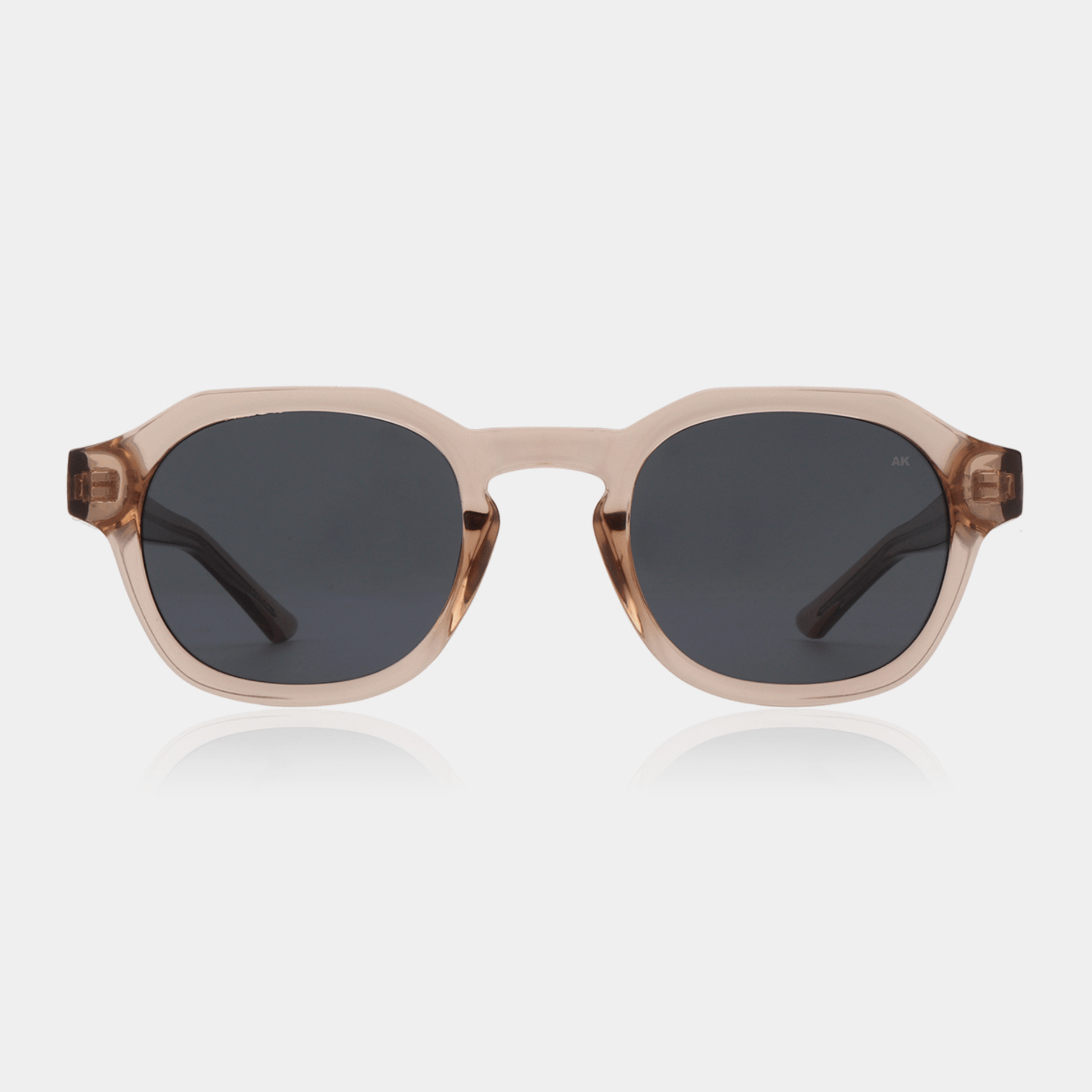 ZAN Sunglasses in Champagne by AKJAERBEDE is a perpendicular interpretation of the classic round design. ZAN's frame creates a perfect contrast between the hard and the soft, and it is an ideal unisex frame as it suits most face shapes.