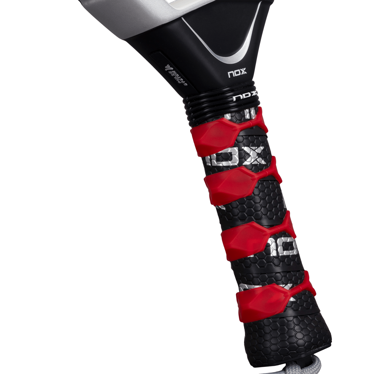 This season, we’ve redesigned it with an improved mould, and the standout innovation is the Weight Balance counterweight system, allowing you to adjust the balance to your preference. The racket also features the innovative Chromic Paint in the core, which reacts to light and changes colour, along with the Dual Spin surface to maximise spin. Combined with the 18K aluminised carbon structure and the MLD Black Eva core, it ensures a solid, comfortable feel and consistent performance in any playing condition.