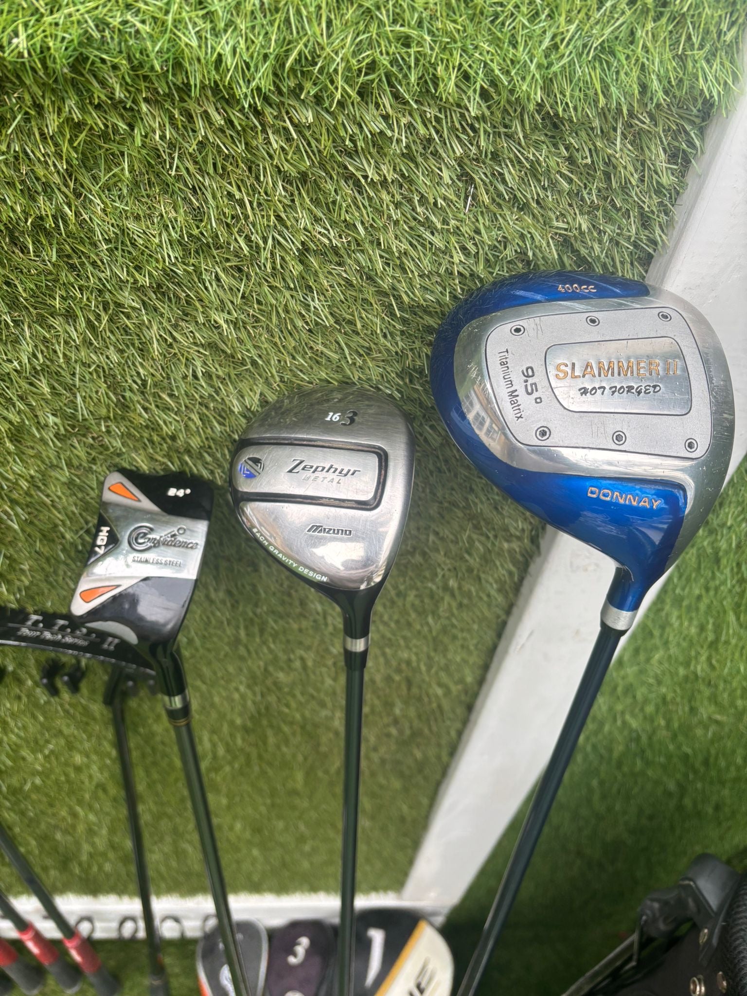 Callaway Tungsten Titanium Irons + Donnay Driver + Mizuno Fairway + Confidence Hybrid + Callaway Stand Bag (12 Clubs)