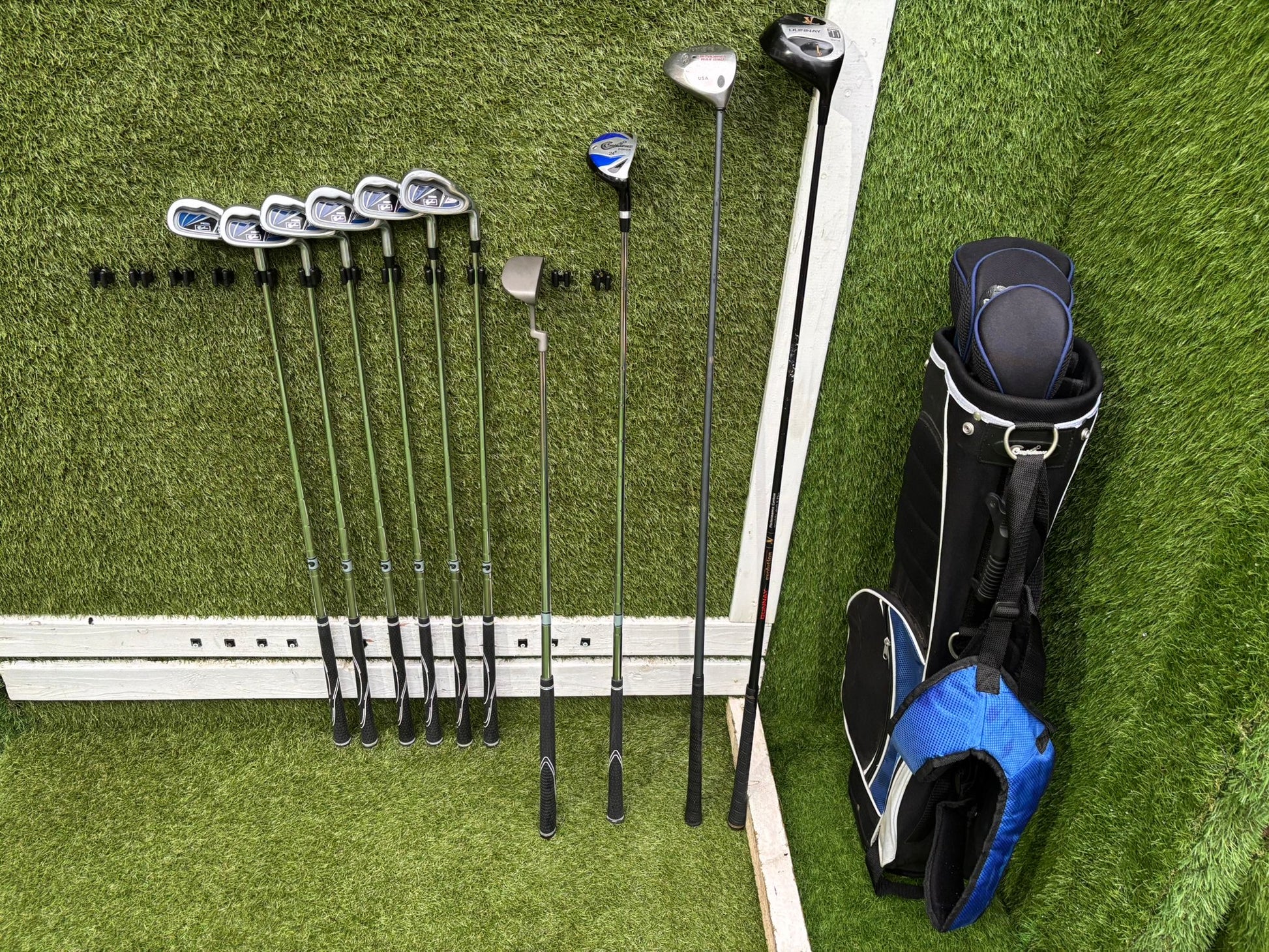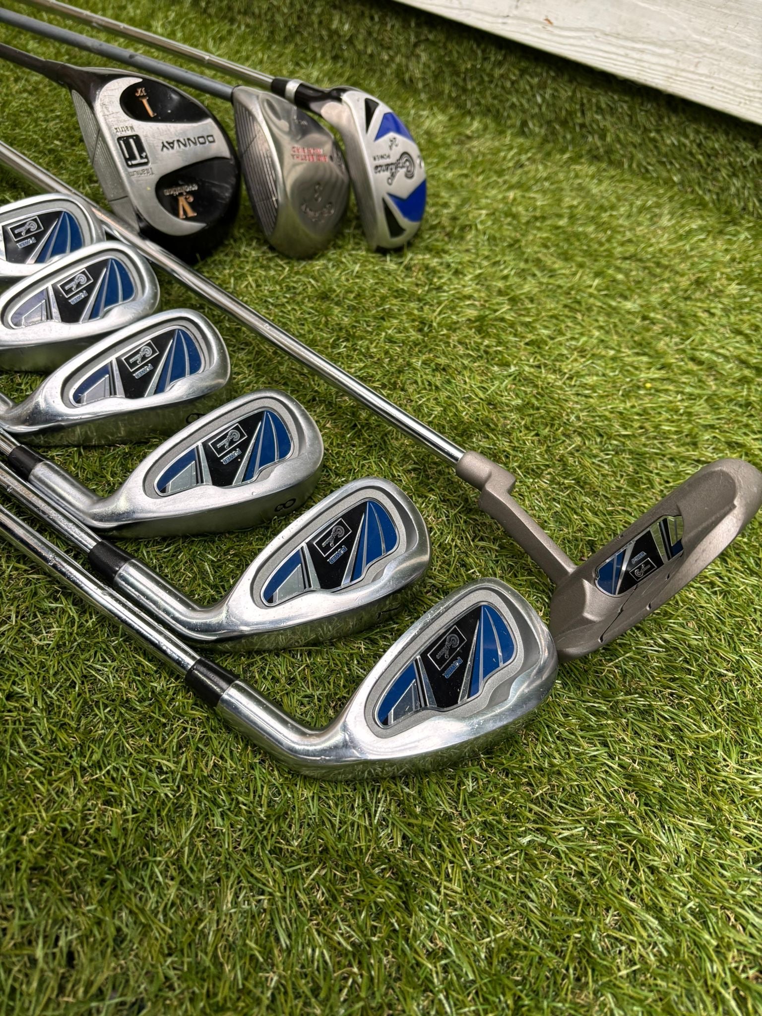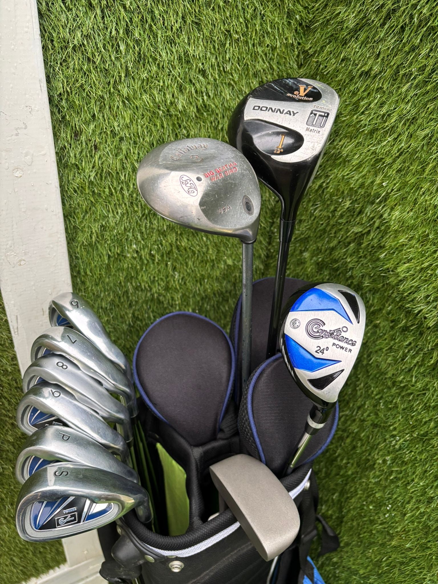 A tidy, well-balanced golf set ideal for beginners or casual players. The Confidence irons, putter and bag are in very good condition with minimal use, while the Donnay and Callaway woods show average cosmetic wear consistent with normal play. Matching headcovers included, making this a complete and confidence-boosting setup.
