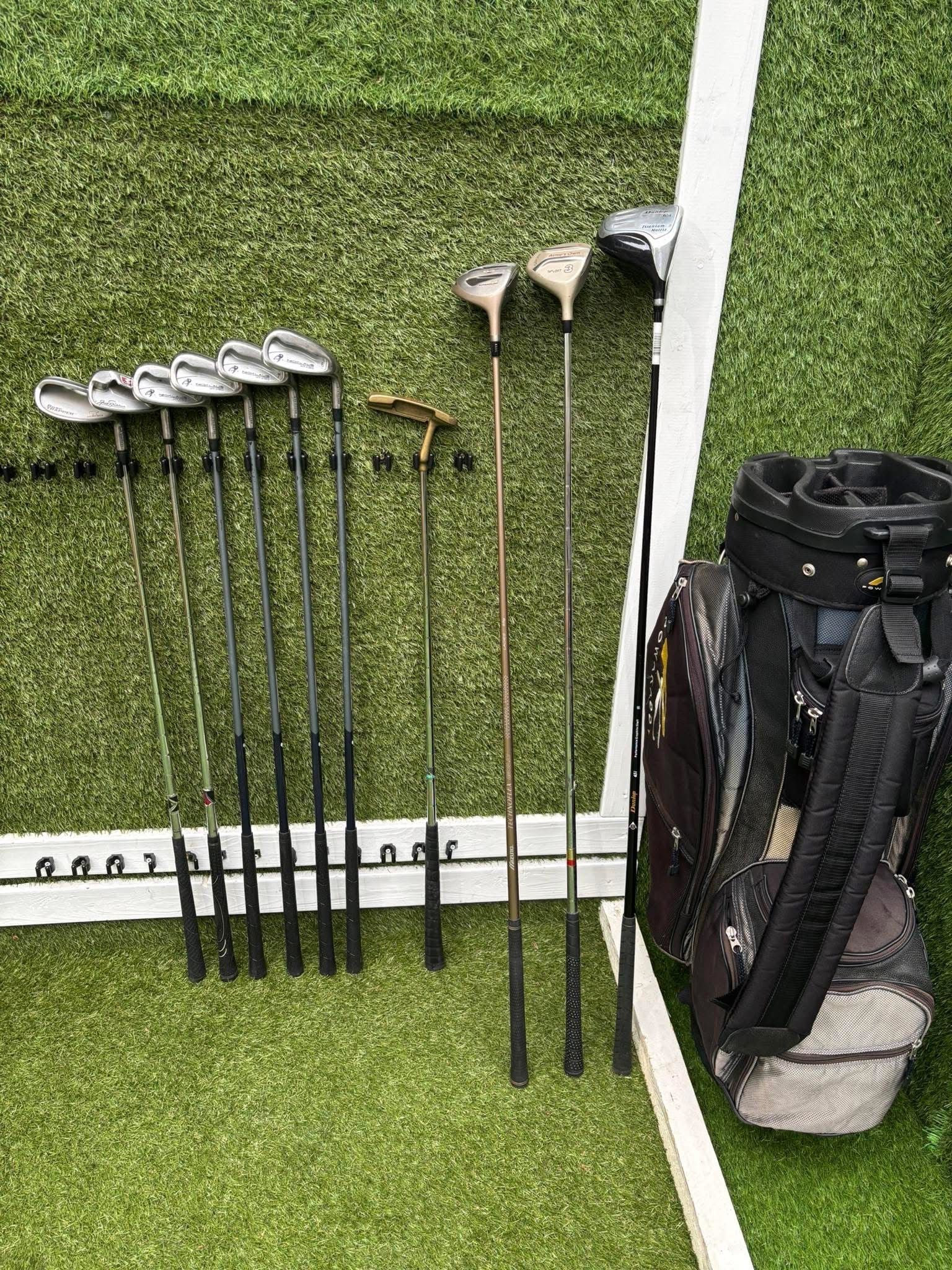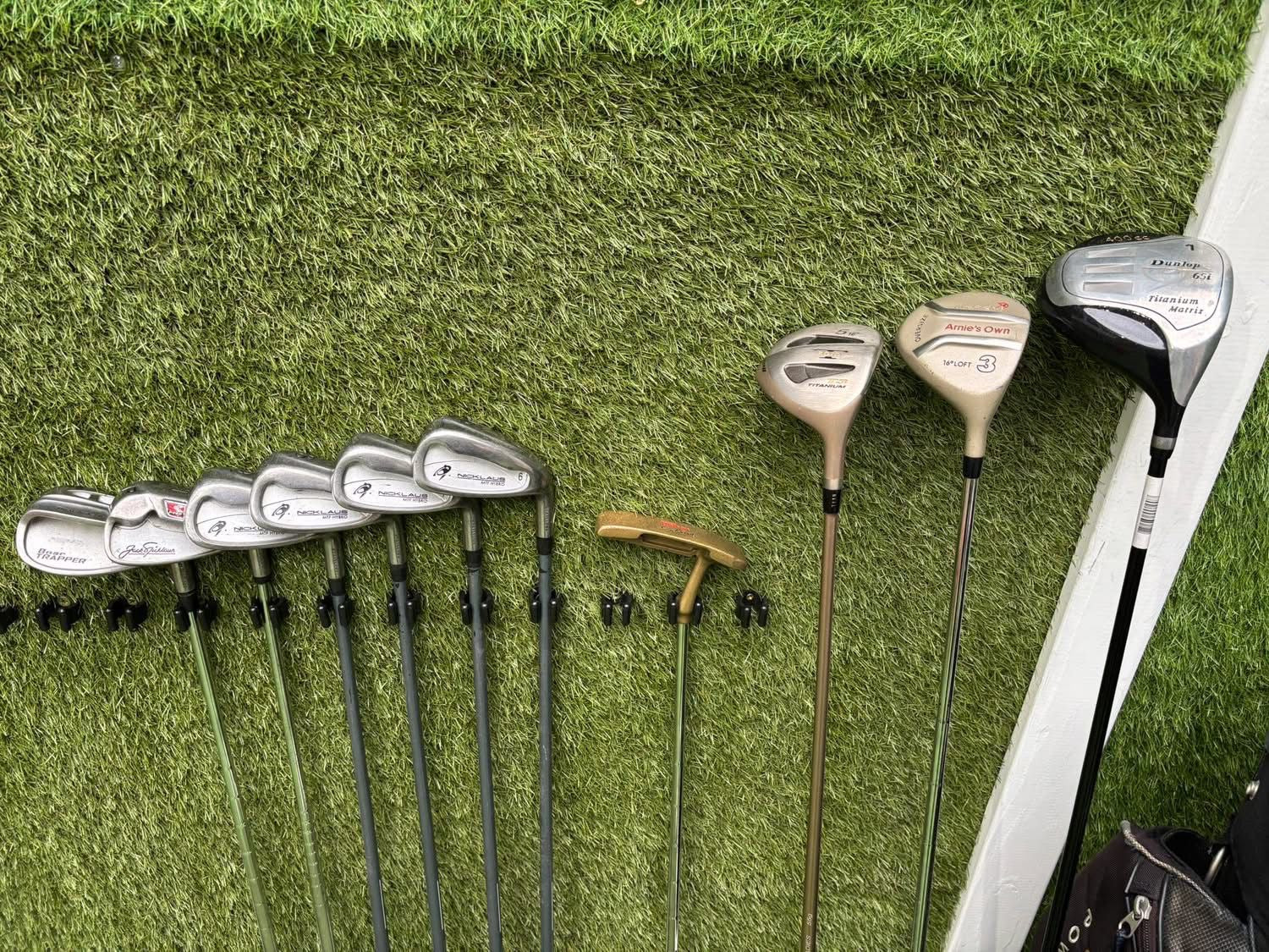 Jack Nicklaus Hybrid Irons + Dunlop / Arnold Palmer / Mizuno Woods + Golden Bear Wedge + Bag – 10 Club Set