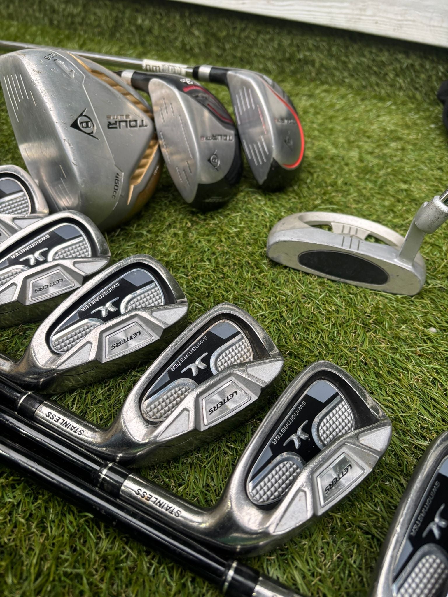 John Letters Swingmaster Irons + Dunlop Tour Woods + Hippo Putter + Dunlop Cart Bag – 11 Clubs