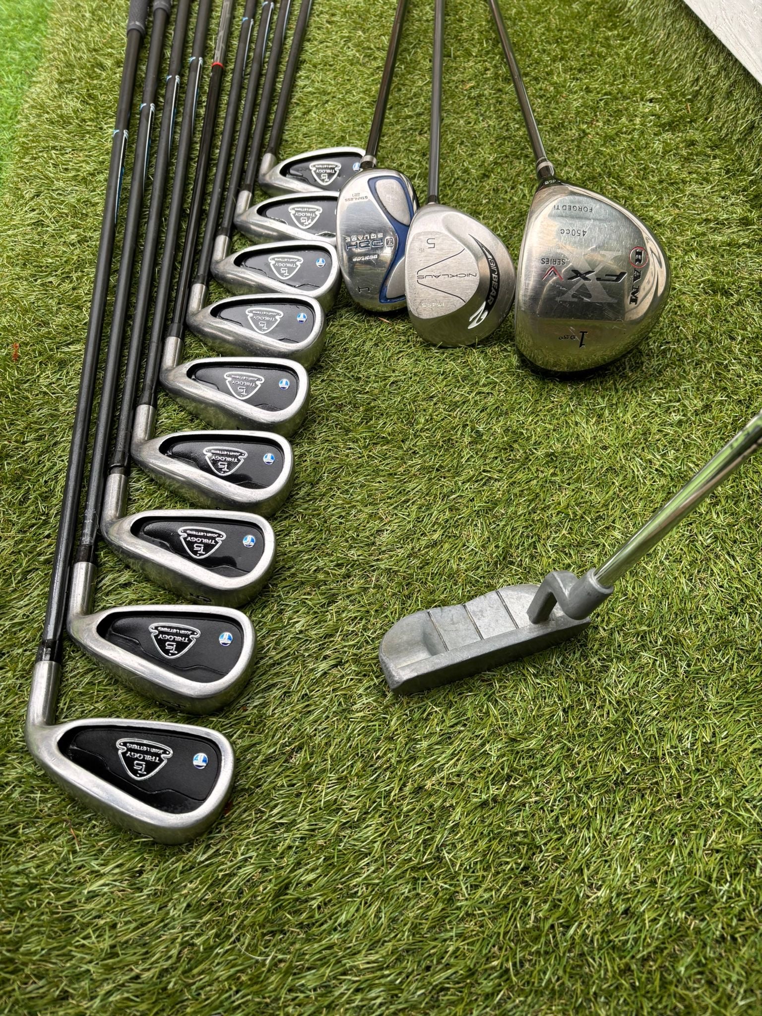 John Letters Trilogy T5 Graphite Iron Set + Woods & Motocaddy Bag