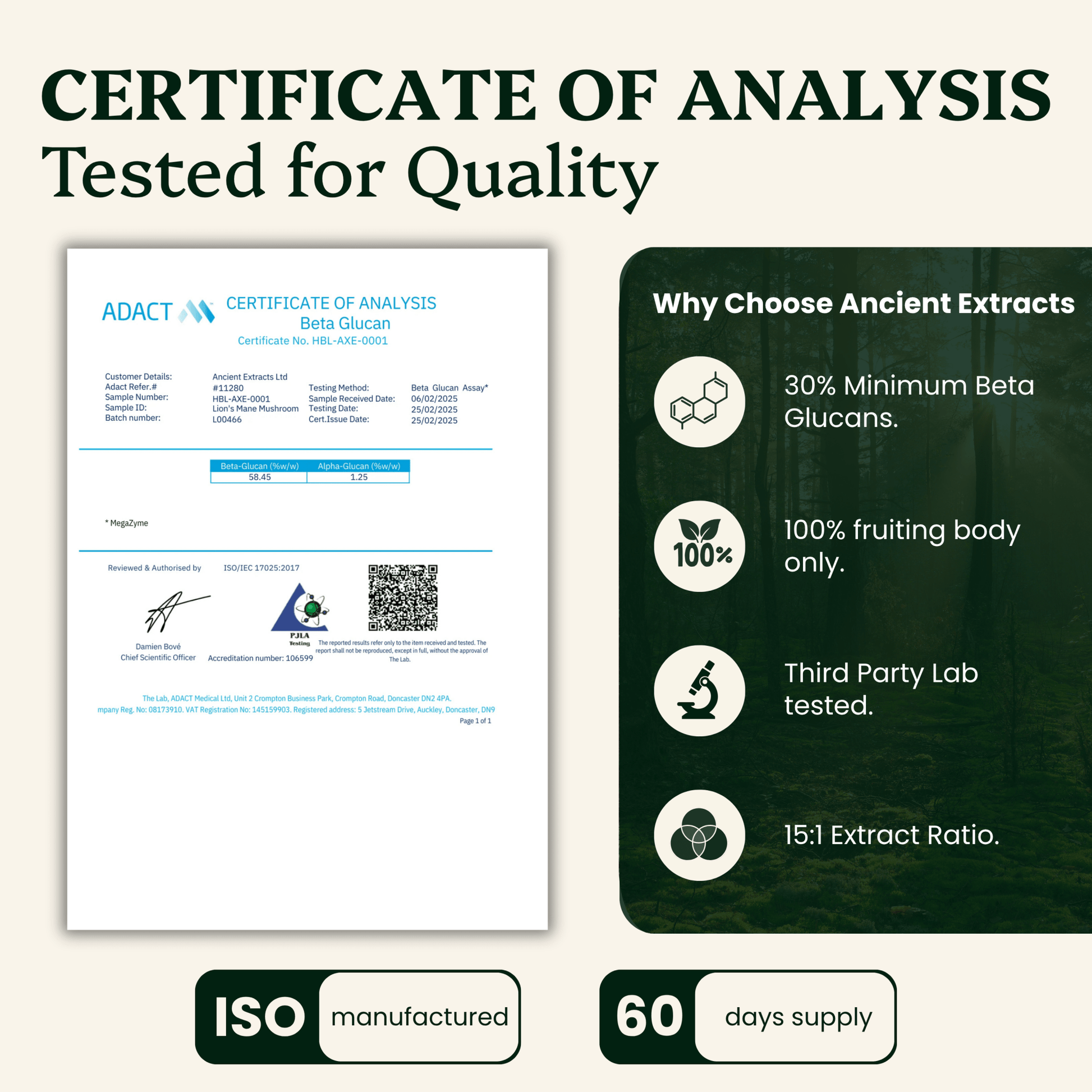 Lion's Mane Mushroom Extract Powder - 30% Beta-glucan (60g)