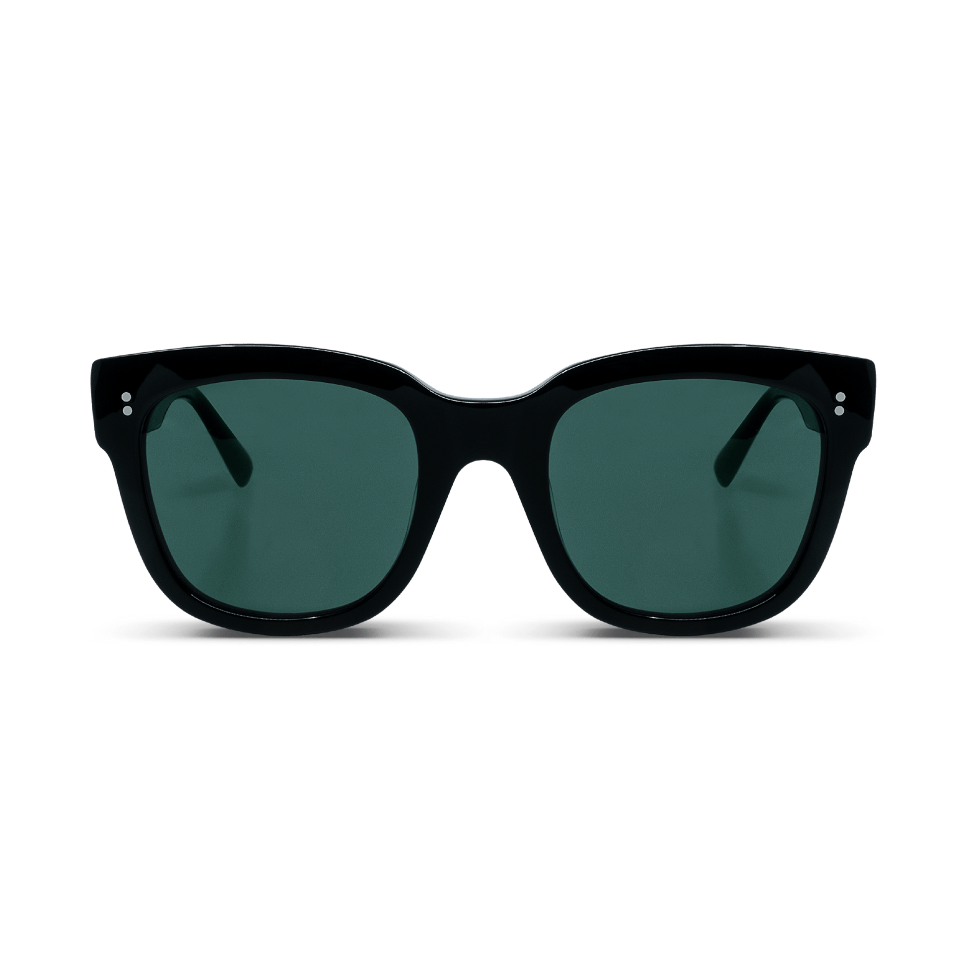 LIV by Messy Weekend in Black, green lens is a statement, oversized square sunglasses with a distinctive high-quality acetate frame and 5 barrel hinges. 100% UVA+UVB protection. Bold. Subtle. Classy. Playful. With all these colour ways, it's easy to find the right pair of LIV for any person, any style. LIV was recently revamped and is now handcrafted from higher quality acetate and features new design details.