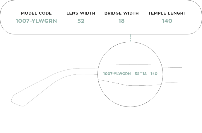 Many eyeglasses have three numbers that you can find on the inside of the arms. The first is the glasses lens width, the second is the nose bridge width, and the third is the temple length. Or, look for a size chart in the product description on either our website or the manufacturers website.