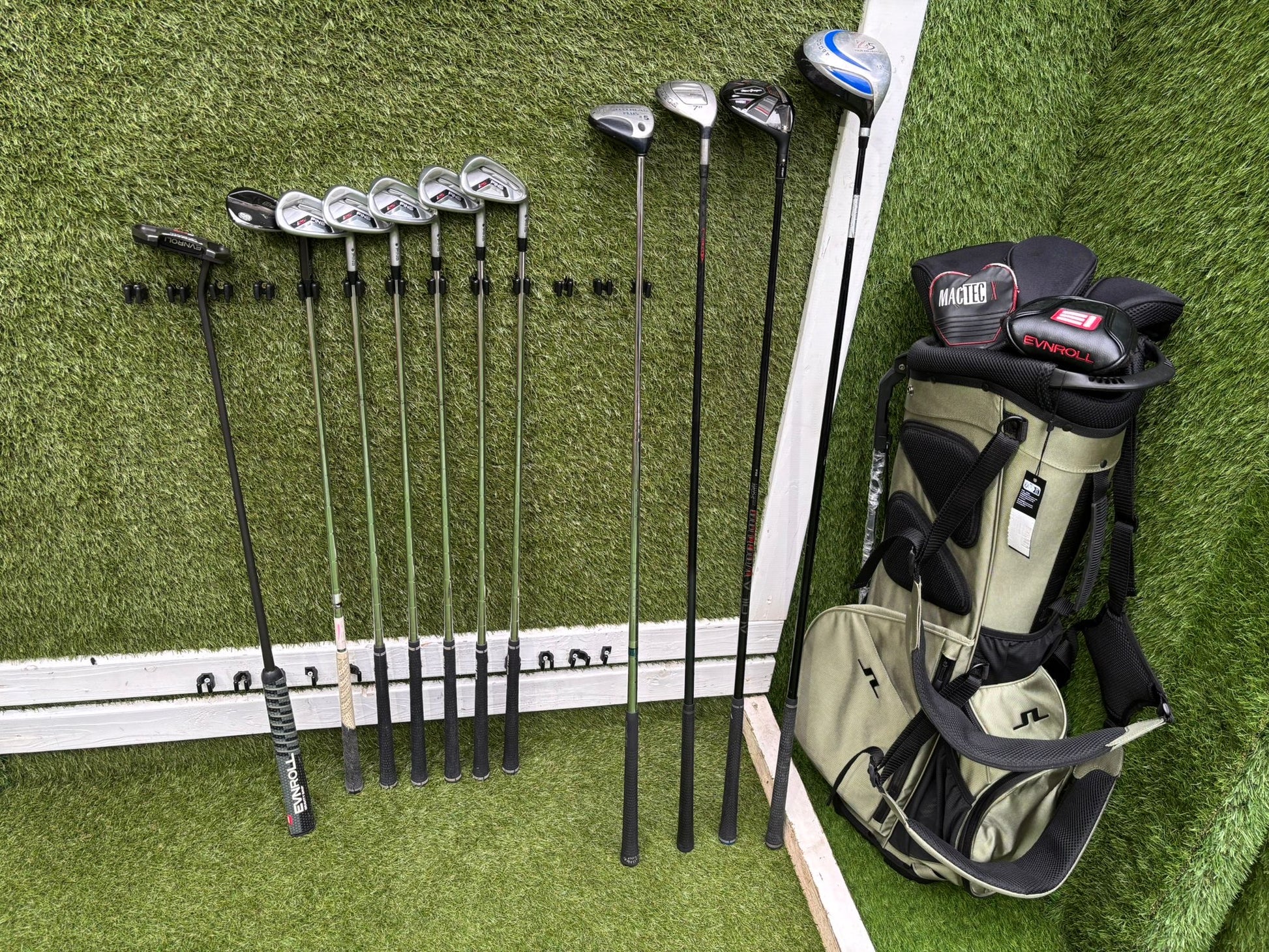 A high-quality mixed-brand golf set built around Ping i25 irons, supported by a premium EVNROLL milled putter, a new J.Lindeberg stand bag with tags, and a solid selection of woods, hybrid, and wedge. A strong, playable setup offering performance, forgiveness, and excellent value throughout the bag.