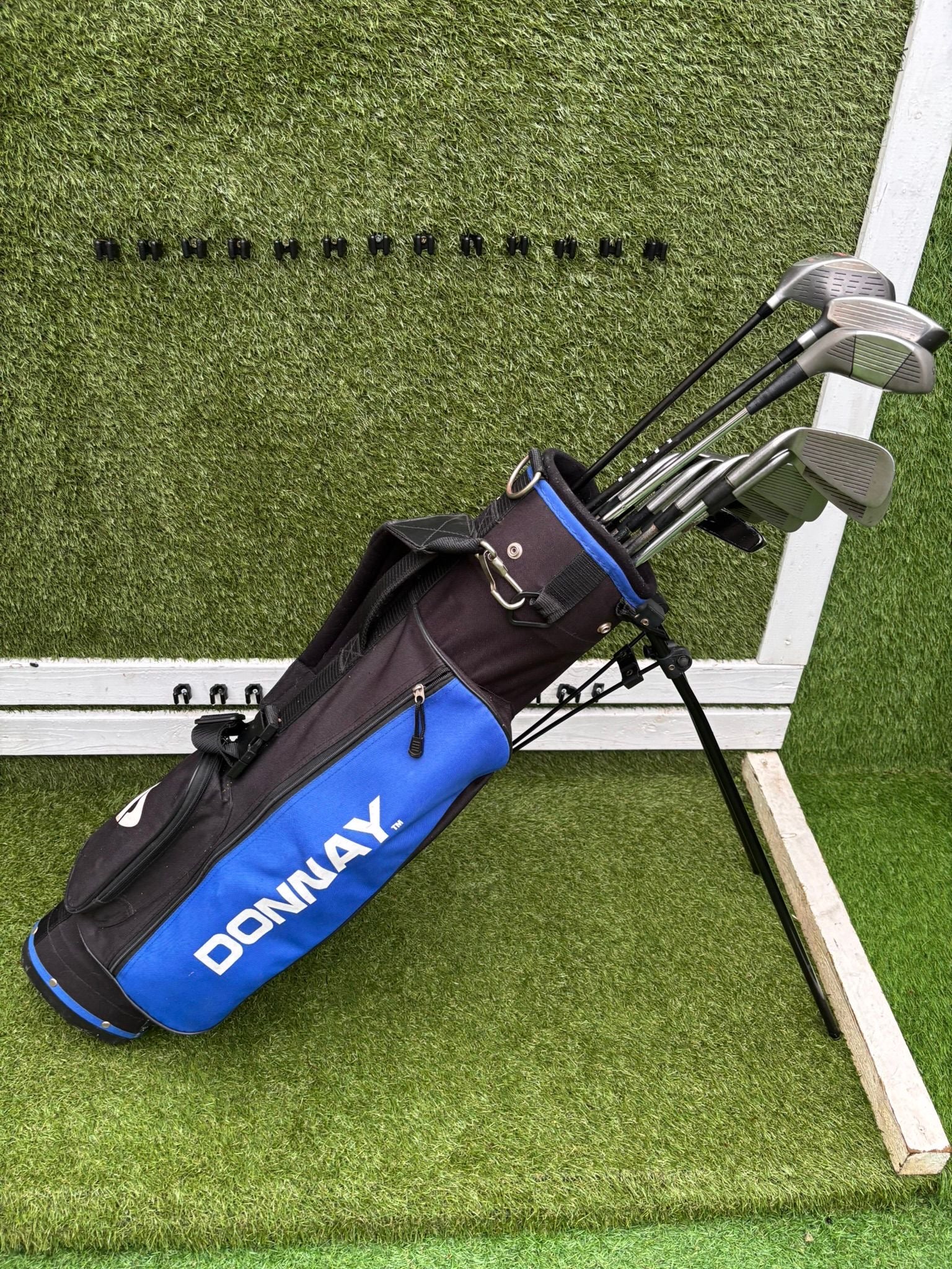 Perfect budget starter setup for beginners or the driving range. Full 13-club set including irons, three woods, putter and stand bag. Some oxidation on the iron shafts, reflected in the low price — all clubs are fully usable and ready to play.