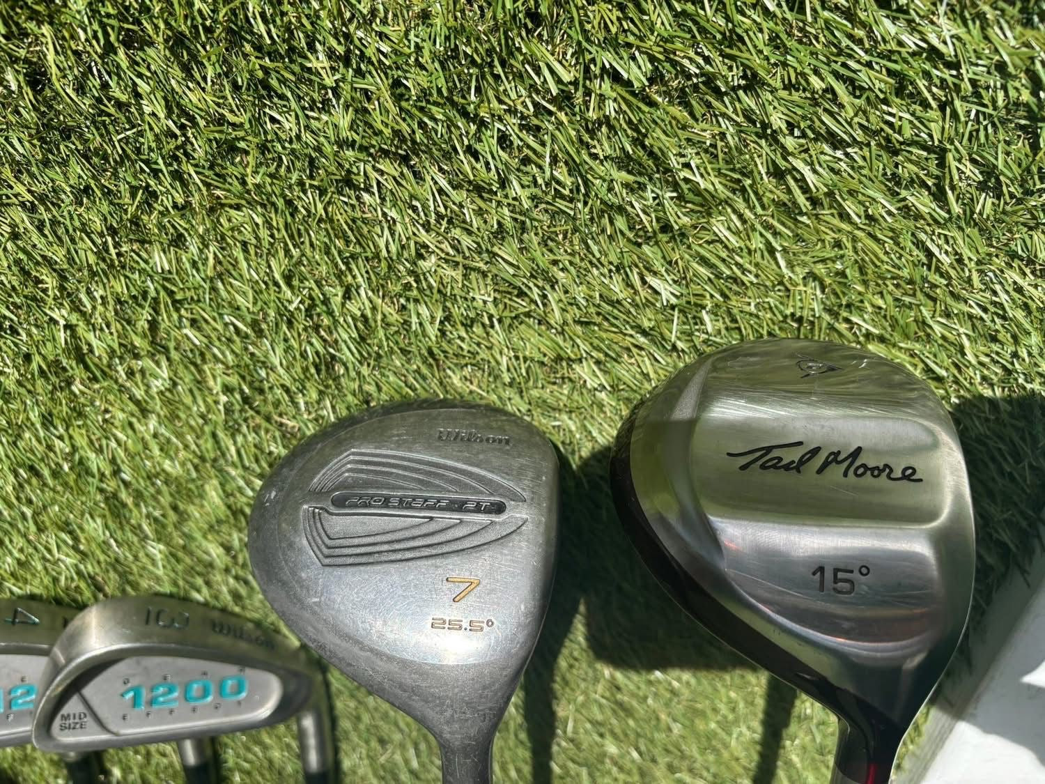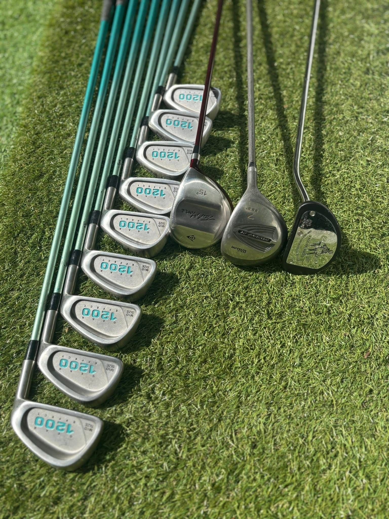 A complete retro Wilson 1200 package with matching sand wedge, Tad Moore 3 wood and the iconic Ram Zebra putter. Clean, ready to play, and paired with a quality Callaway cart bag.