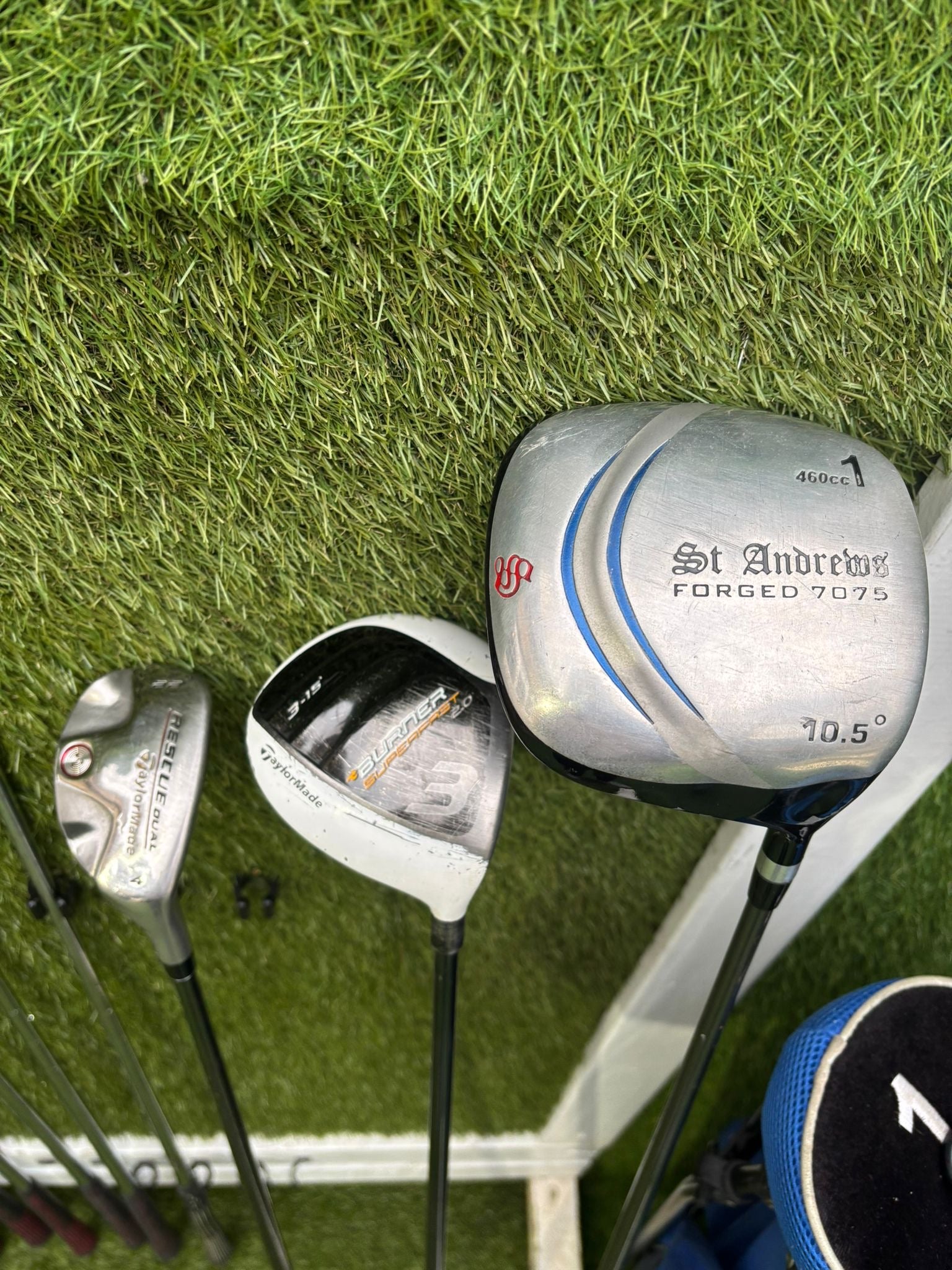 A complete, course-ready golf set covering every part of the bag. Built around a forgiving stainless iron set, paired with reliable TaylorMade woods and hybrid, a classic Ping long iron for control, a traditional blade putter, and a practical stand bag. Ideal for beginners or improving players.