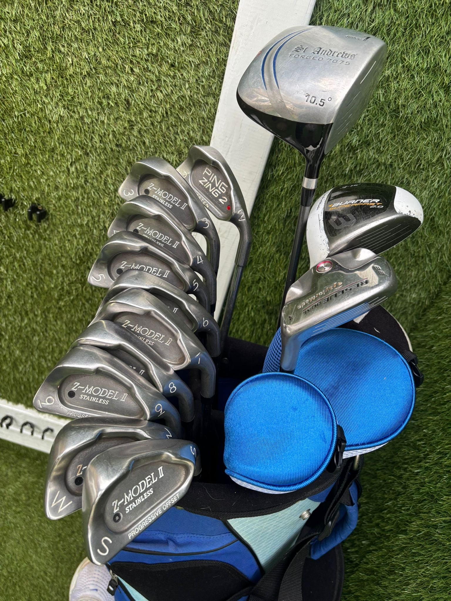 Z-MODEL II Irons + TaylorMade Woods & Hybrid + Ping Zing 2 + Donnay Putter + Peter Alliss Stand Bag – 14 Clubs